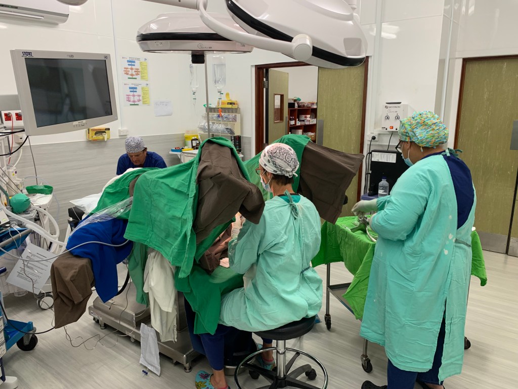 Urodynamic equipment includes; catheters with sensors to measure bladder pressure, a small pump to fill the bladder, a flow metre to measure flow when the patient passes urine and a laptop computer to capture all the data. This equipment has to come with us as part of our luggage. A full urodynamics machine can cost between $15 000 and $25 000. We therefore have had to rely on Endoventure every year to lend us one of their’s.